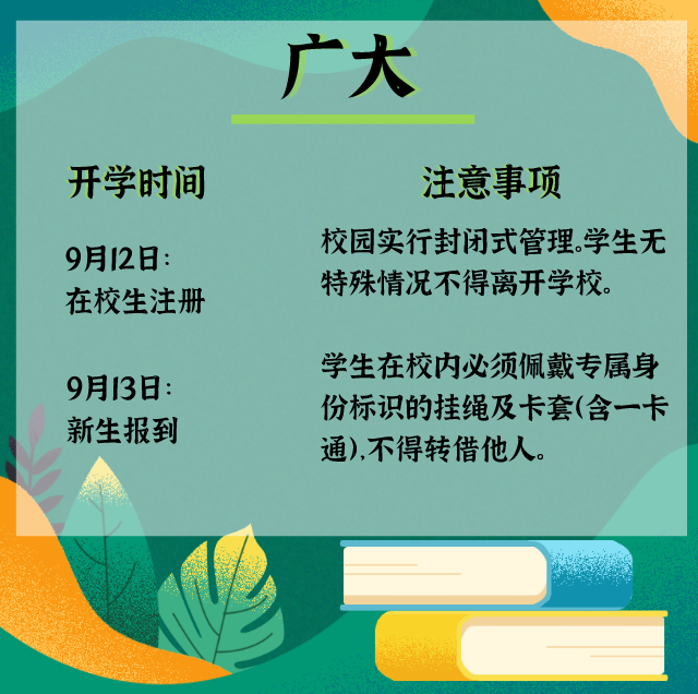 秋季新学期即将开始,全国各大高校陆续公布返校时间和具体的防疫管理措施。