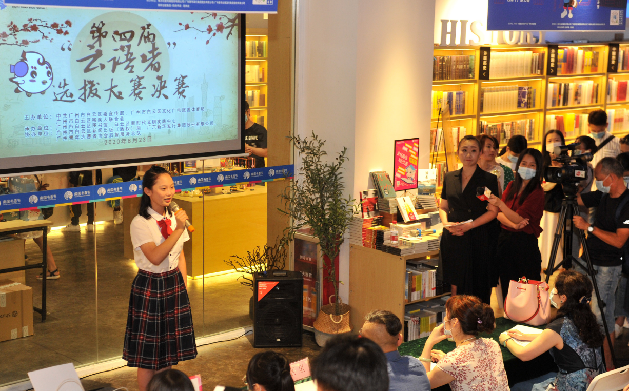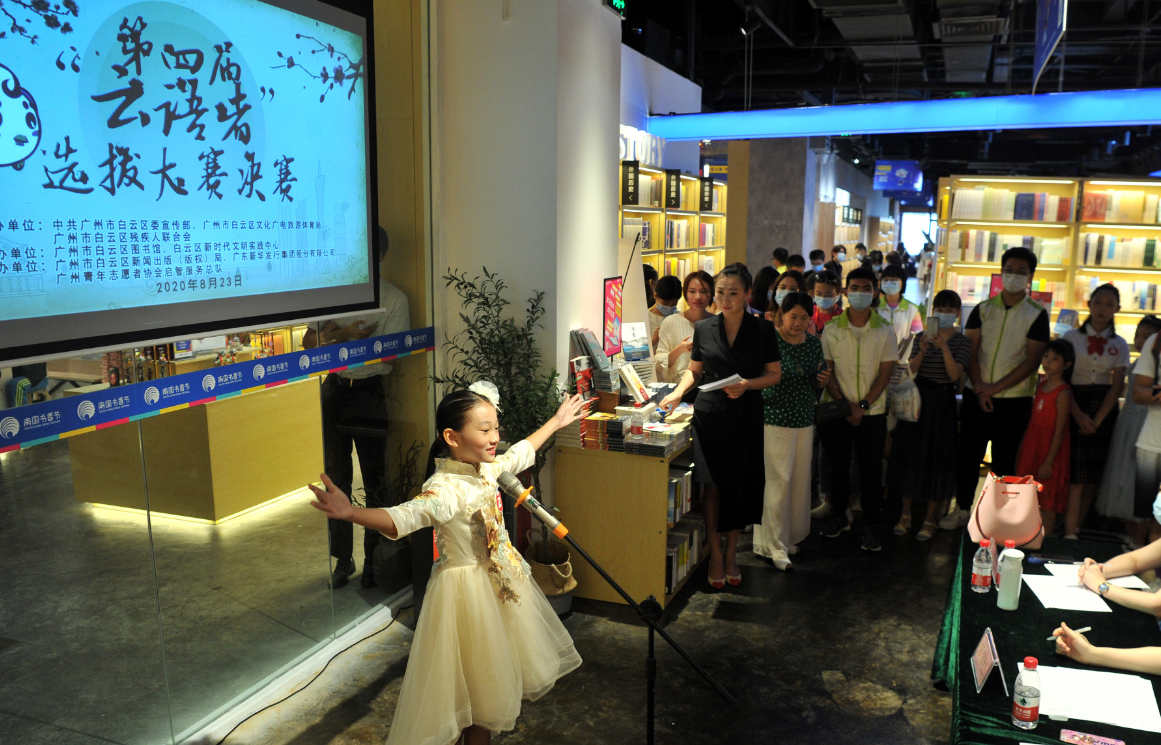 8月23日,第四届“云语者”选拔大赛决赛在四阅书店琶洲店举行,并通过“新花城”等网络平台进行同步直播。据了解,本次活动由中共广州市白云区委宣传部、广州市白云区文化广电旅游体育局、广州市白云区残疾人联合会主办,广州市白云区图书馆、白云区新时代文明实践中心承办,广东省新华出版发行集团、广青志愿者协会启智服务总队协办。