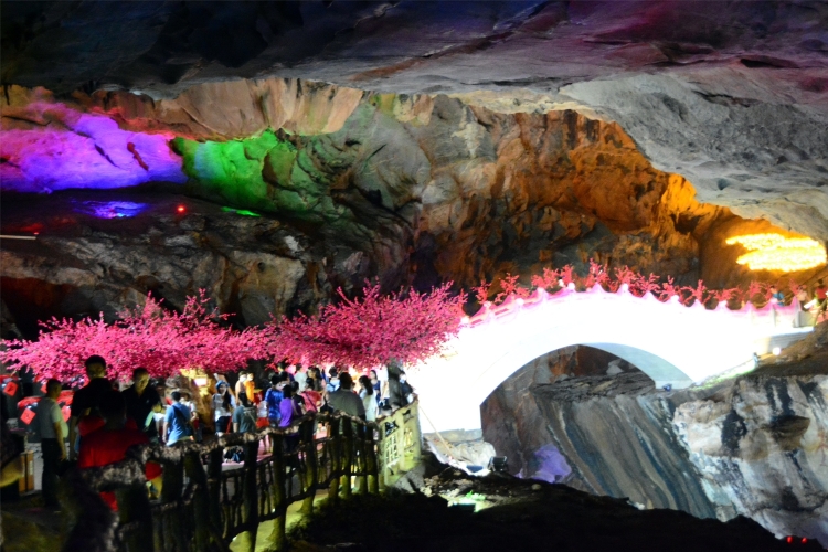在七夕来临之前,地下河将地下溶洞里一座连接河两岸的桥布置成鹊桥。桥为一座小型拱桥,用汉白玉石建成,景区用桃花、粉红纱巾、粉红地毯、喜鹊模型布置成一座鹊桥。行政人事部门发出通知,在景区上班,分居两地的夫妻员工,可以邀请自己的另一半来景区“鹊桥会”,由景区报销车费,安排吃住与游玩。