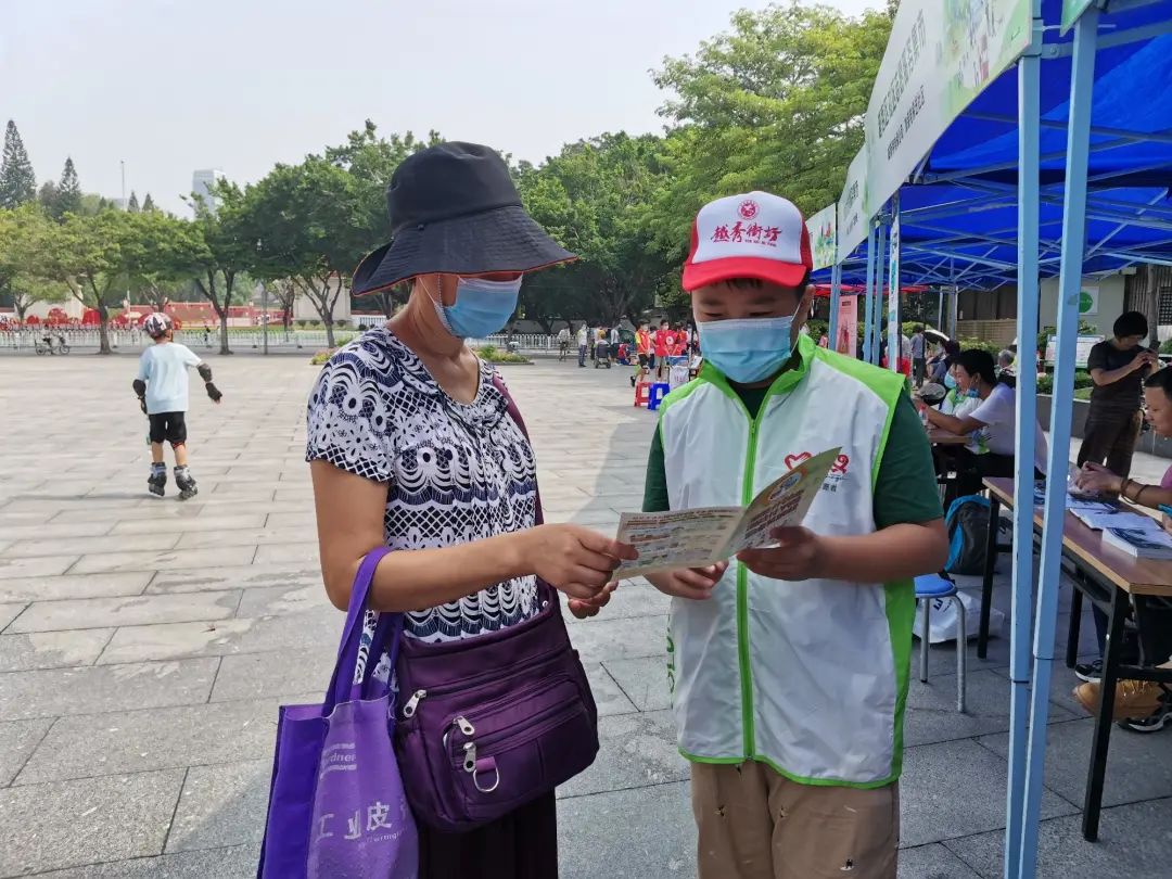 志愿者冼女士一早就和儿子来到英雄广场,二人负责到地铁站附近派发传单。“我以前也不知道有害垃圾具体有哪些,今天参加活动才了解,还可以向街坊科普,真的很有意义。”