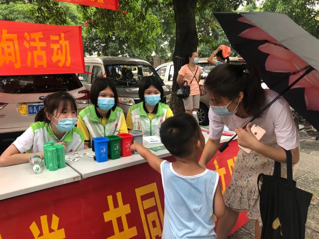 据悉,暑假期间棠德南社区组织的社区咨询系列活动中,参与的中小学生志愿者有50余人次。在广州市第十八中学念书的许同学和她的双胞胎妹妹,暑假通过广州市的“i志愿”系统报名参加过多个社区举行的垃圾分类宣传活动:“目前在有些老旧、没有物业的小区,垃圾分类还不是很普及,所以需要社区的工作人员和志愿者们多多宣传介绍,我们也愿意为垃圾分类、绿色环保出一份力。”