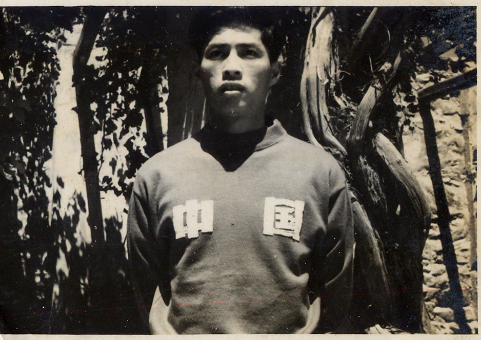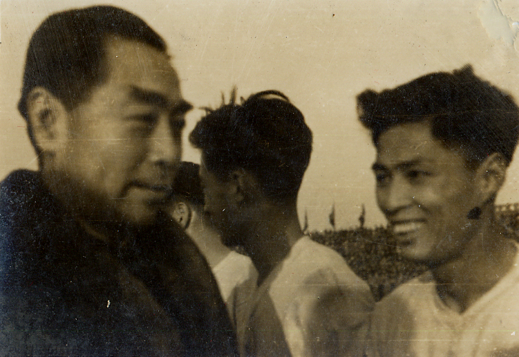冼迪雄在20世纪50年代的国家队比赛中接受周总理的接见。
