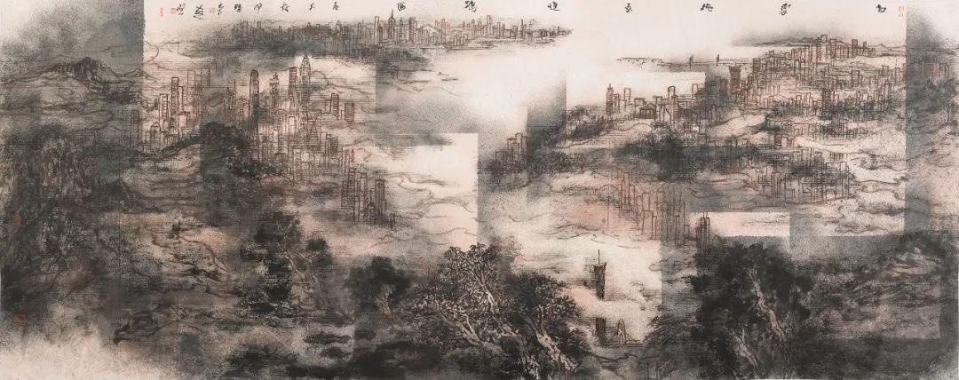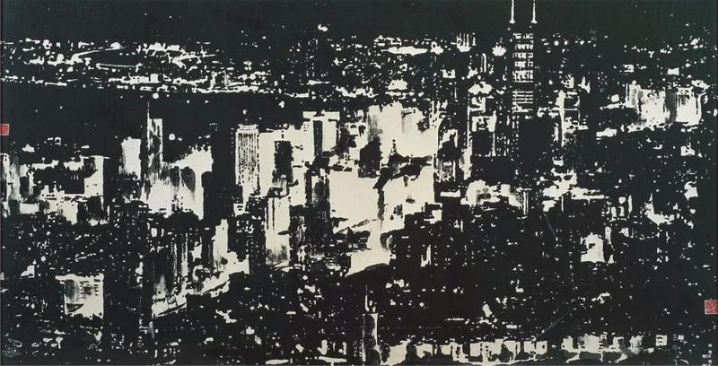 杨晓洋《万家灯火》 纸本水墨 86cm×186cm 2003年