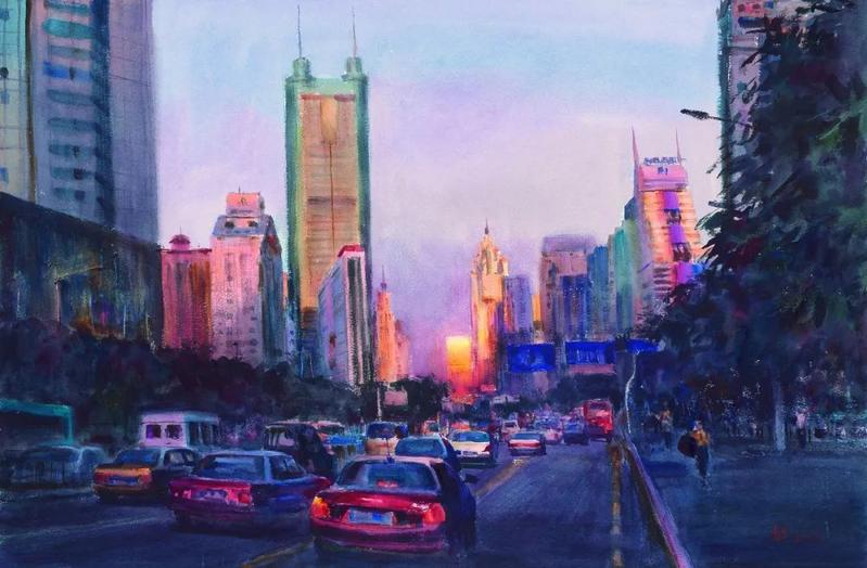 陈希旦《深圳夜景》 纸本水彩 67cm×101cm 2004年