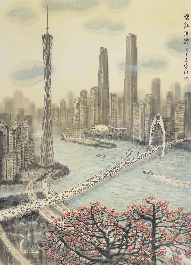 方楚雄《珠江新貌》 纸本设色 145cm×105cm 2020年