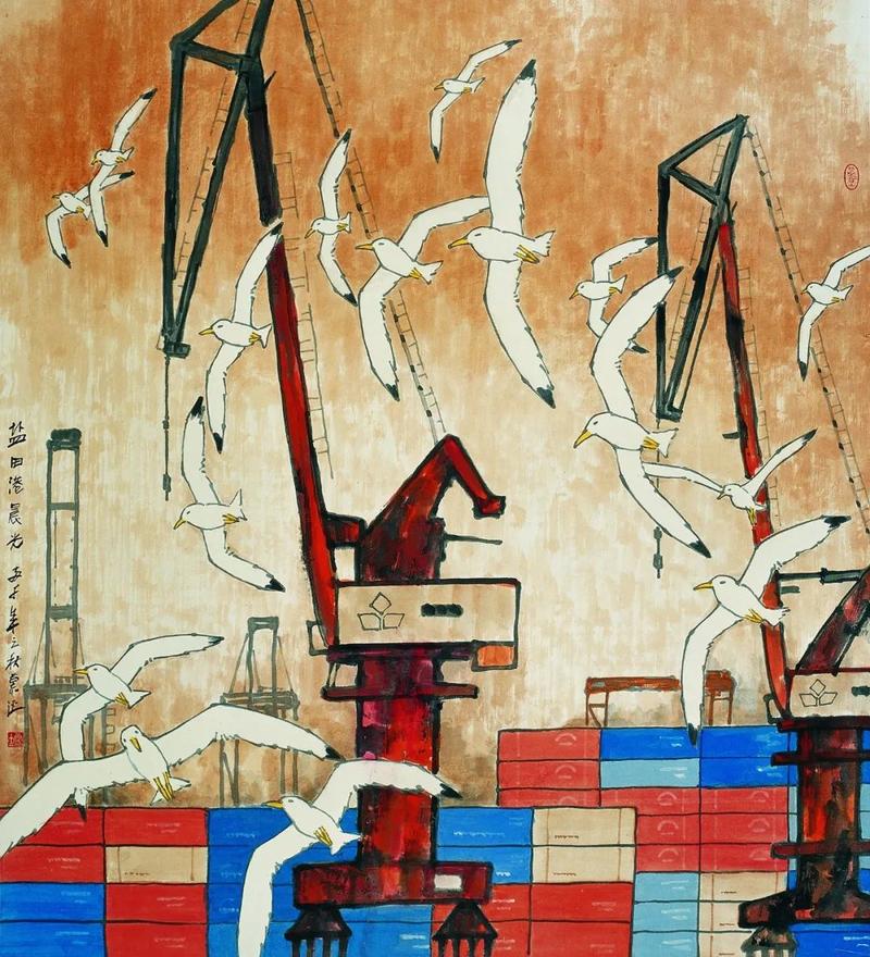鲁慕迅《盐田港晨光》 纸本设色 106cm×97cm 2000年