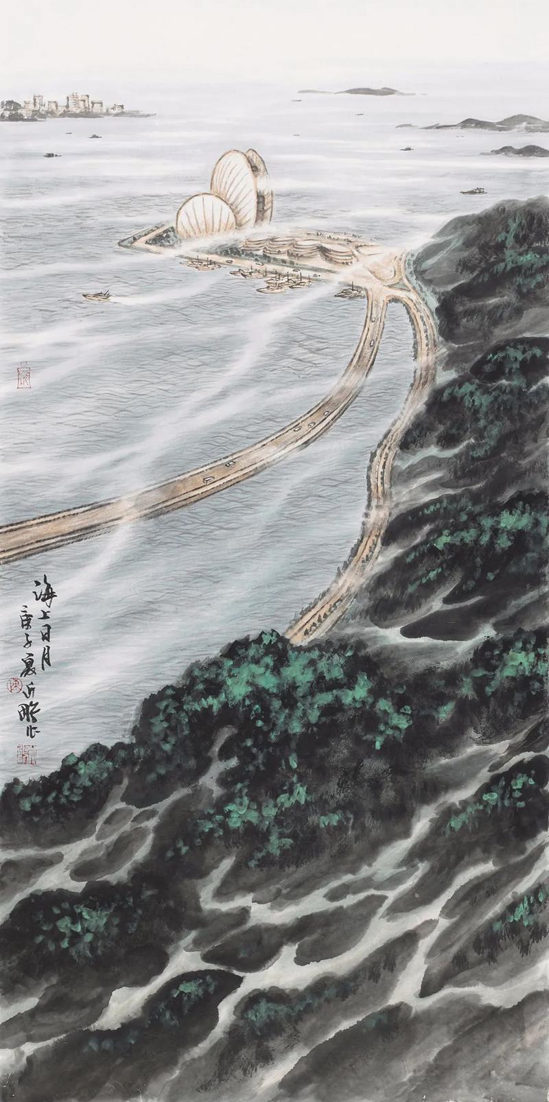 陈兆鹏《海上日月》 纸本水墨设色 136cm×68cm 2020年