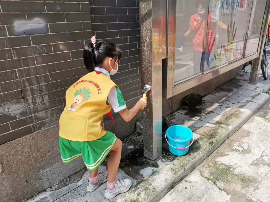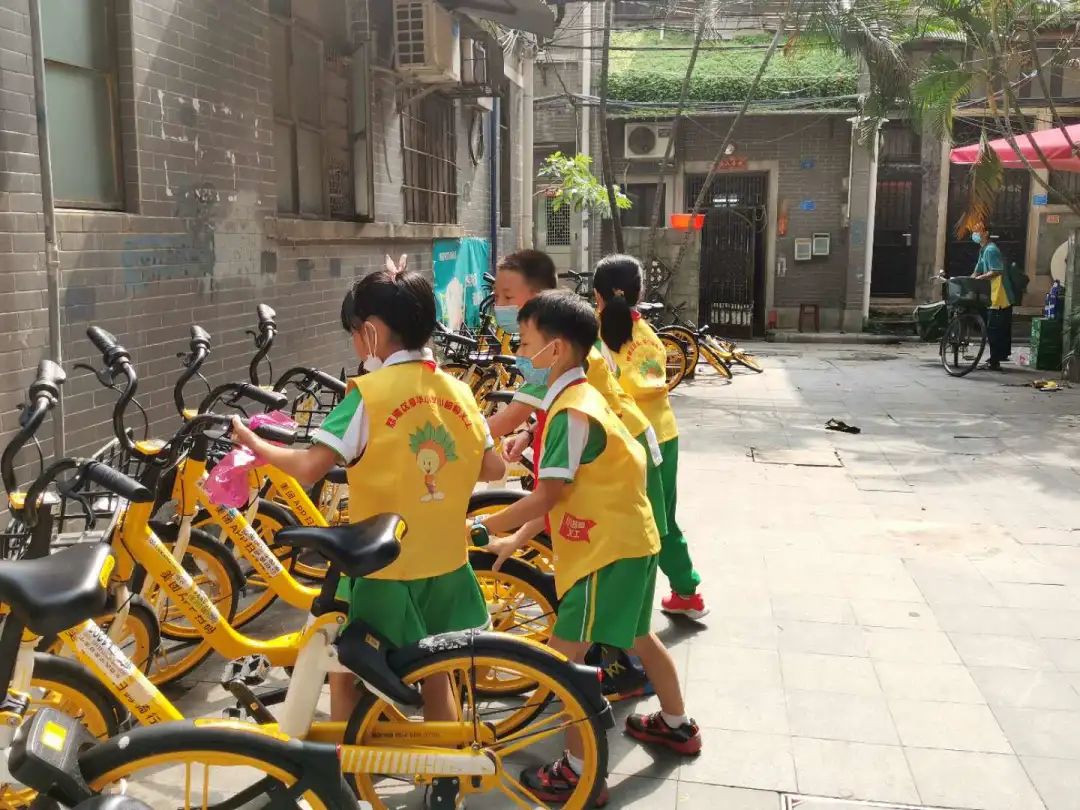 9点半左右,志愿服务活动正式开始。虽然天气炎热,但丝毫不影响亲子志愿者们参与活动的热情,家长带着小朋友们发挥“不怕苦,不怕累”的精神,仔细清洁社区里的多个宣传栏、用铲子清除乱贴的小广告,并将巷子里的共享单车摆放整齐,共同用行动扮靓社区。