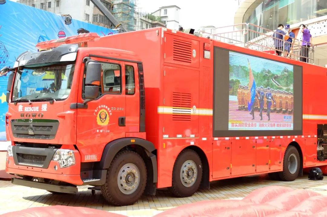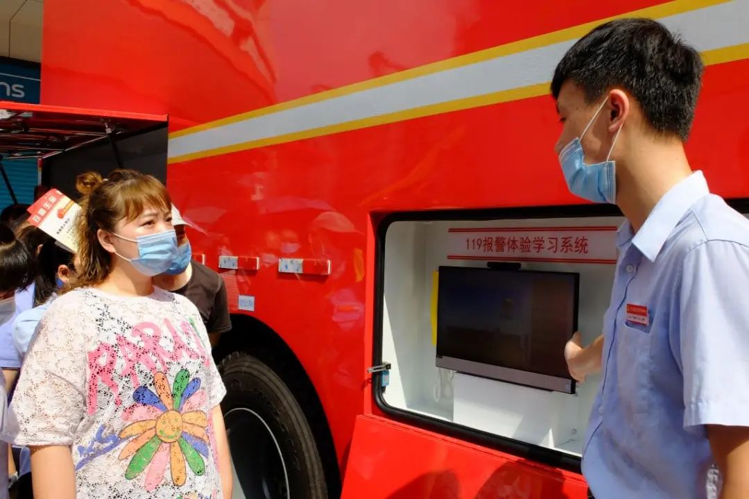 在活动现场,来了两辆“特别”的消防车。它们虽然有着跟消防车一样威武的外观,但它却不能救火,而是干起了“消防安全科普”的活。