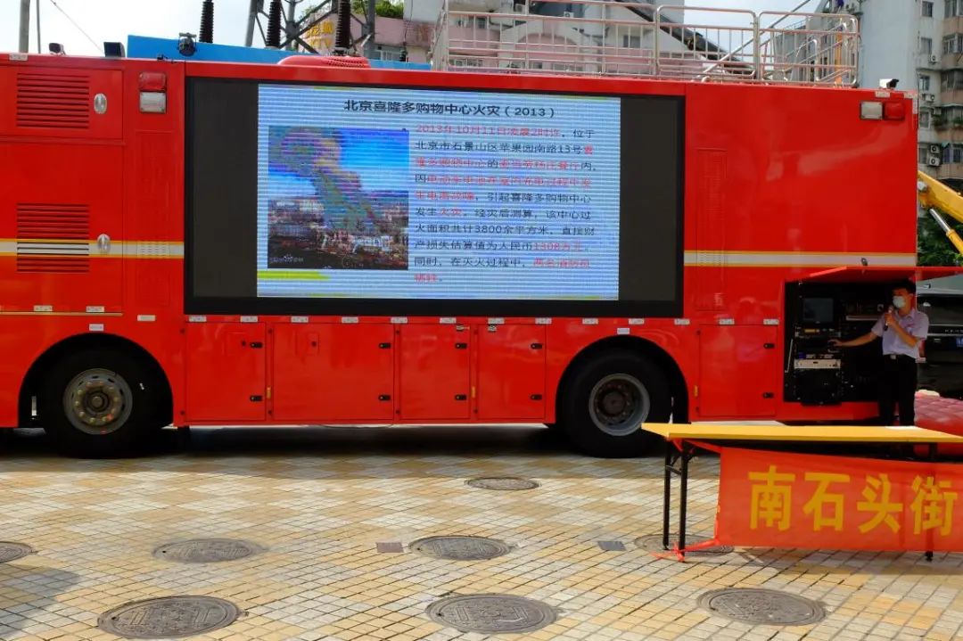 活动开始后,主办方首先利用多功能消防宣传车上的LED大屏向街坊们进行消防安全教育,让街坊们了解更多消防安全知识与法律法规。
