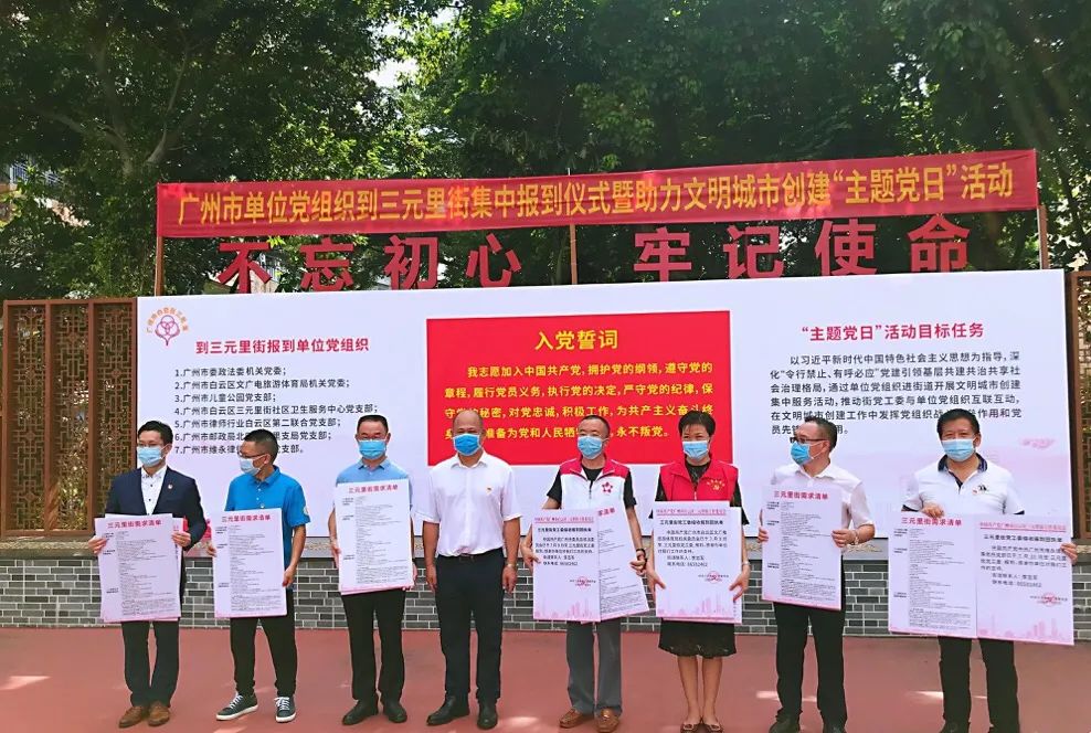 8月25日,三元里街组织开展广州市单位党组织到三元里街报到仪式暨助力文明城市创建“主题党日”活动。