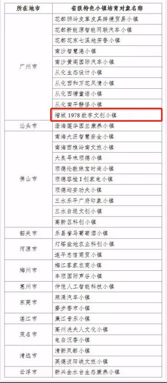 增城1978数字文创小镇入选省级特色小镇培育库拟入库名单啦!