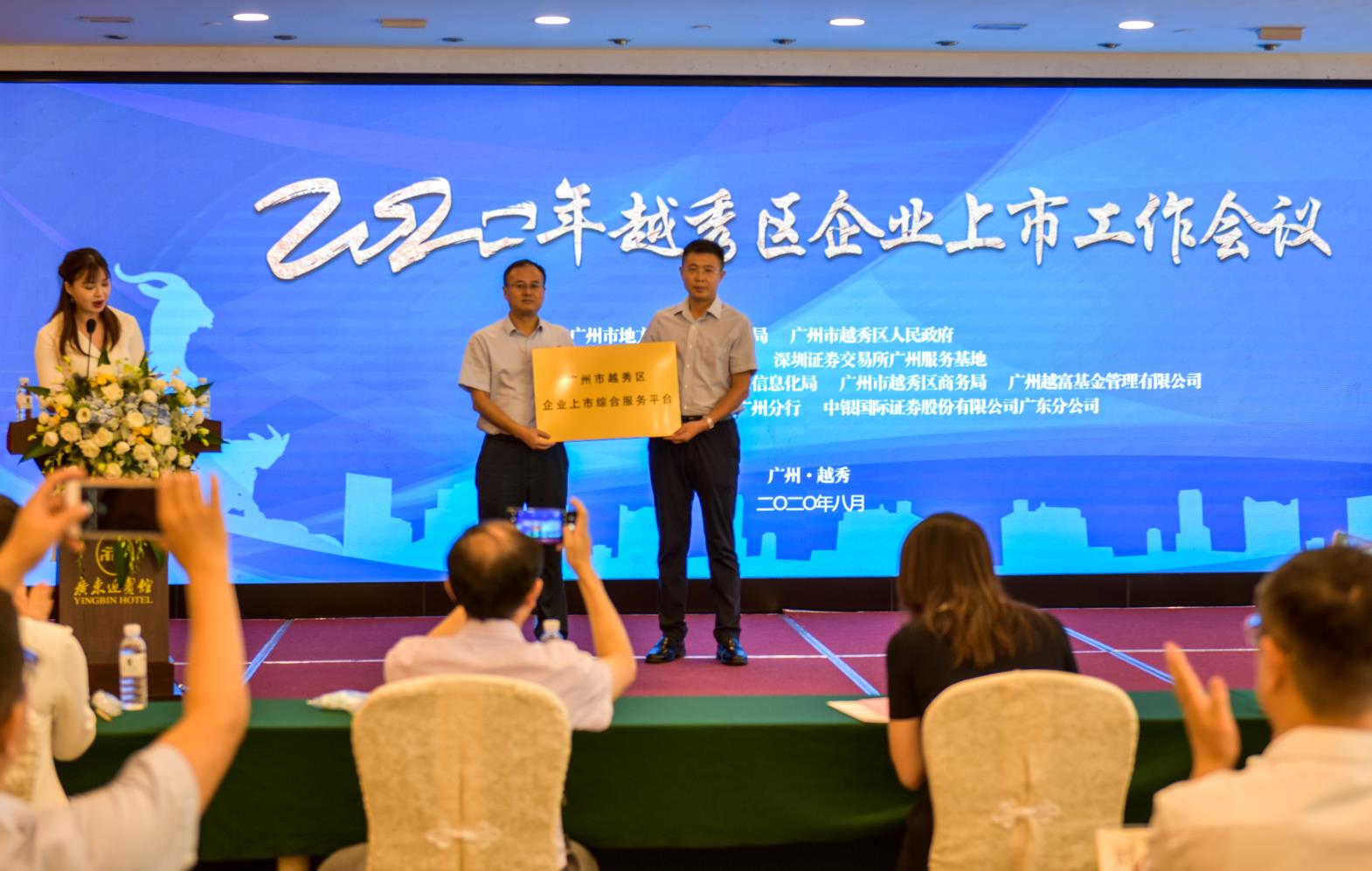 活动现场,越秀区举行了企业上市服务平台授牌仪式。据悉,企业上市综合服务平台依托越秀区属产业投资基金——越富基金丰富的资本市场资源和投融资服务能力,充分整合地方政府、交易所、金融机构、证券公司、律师事务所、会计师事务所、私募股权基金等资源,构建企业上市综合服务平台,统筹辖区企业改制及上市申报服务工作,为企业上市提供全方位、全链条、专业化的服务。