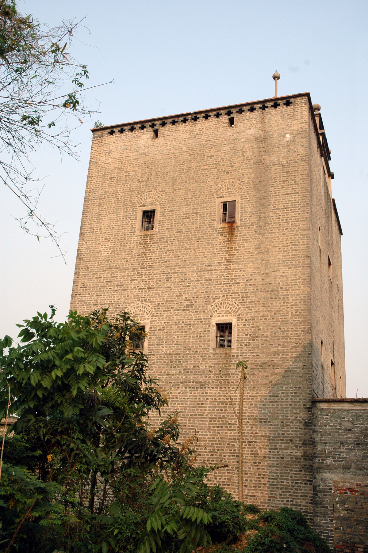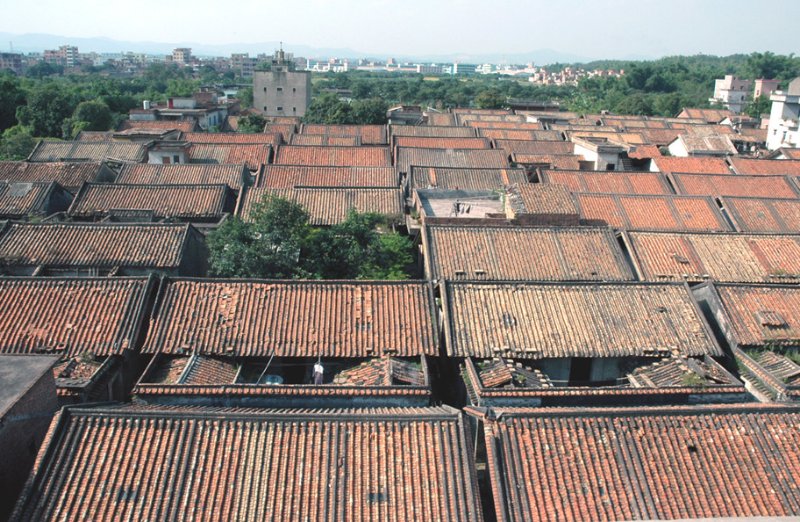 堤楼走进小东圃村,村子内巷道纵横排列有序,巷内平房与瓦房交错,青石板路与水泥地分隔,悄悄诉说着年代变迁在这里留下的痕迹。卢福汉介绍,村内纵排10列民居建筑,每列有8座单体三间两廊式民居。以往每到傍晚时分,巷口东西向的趟栊门一关,村民们纷纷把房门敞开,南北吹来的穿堂风呼啸而过,老人坐在门前乘凉,小孩踩着青石板一块玩耍。