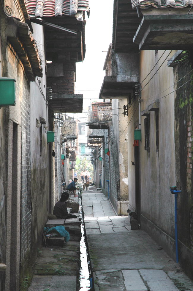 沿着三东大道转入百寿路,车子停靠在一颗大榕树旁,便到达小东圃村。村子坐北朝南,整体平面呈棋盘式,村前是一口与村面等长的半月形风水塘,从这里经过的湿润微风吹进一字排开的古祠堂,祠堂内老人小孩正在休憩玩耍。