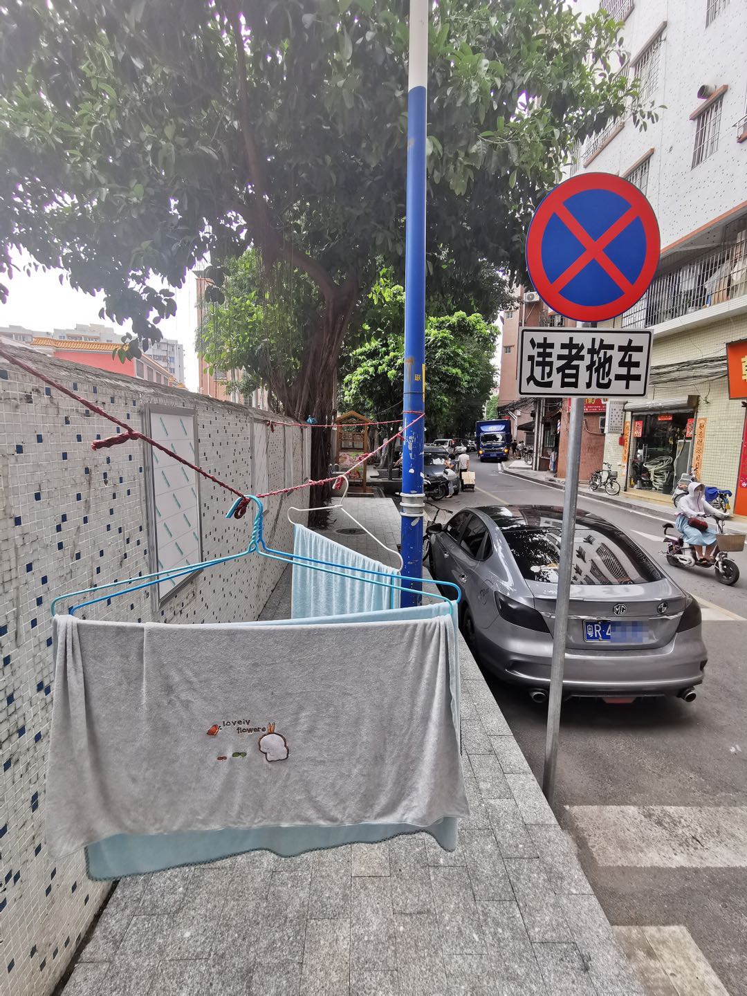 马务联合东街上,不少士多店、水果店、餐饮店把货架或就餐用的桌椅放在商铺外面。尽管马务红棉街、马务联合东街路边有明显的禁停标志,依然有多辆机动车乱停放在路边。街上多处可见乱晾晒衣物、毛巾等现象。