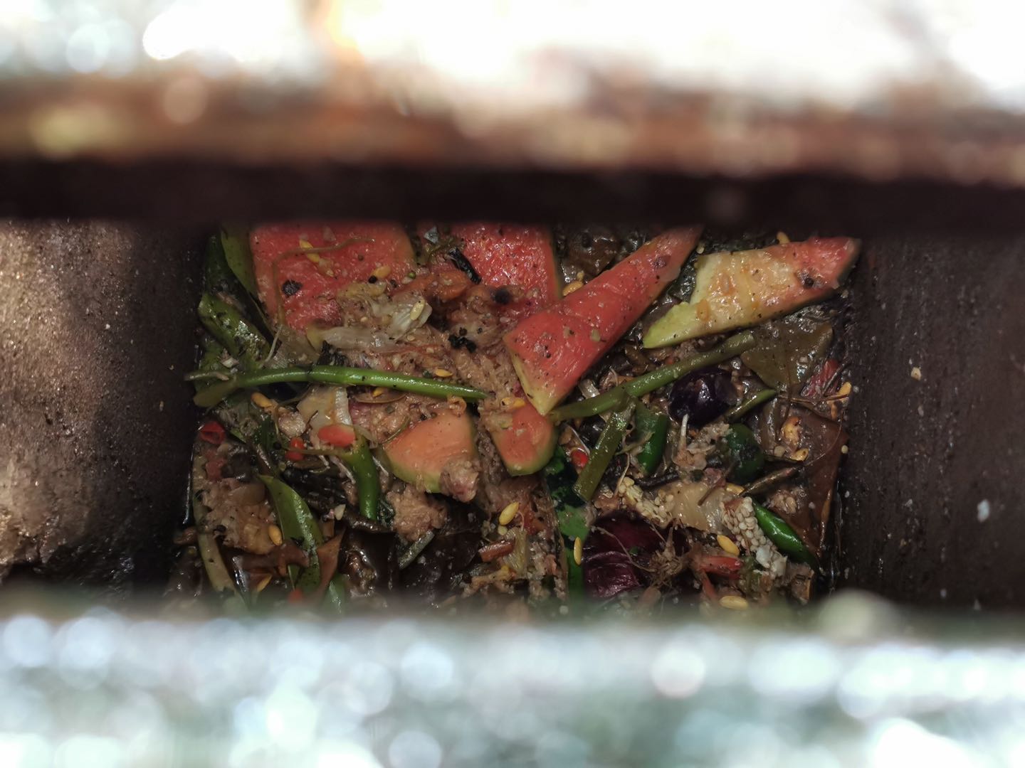 马务联合东街76号对面的地上,一个雨水收集口附近的油污、汤渍、贝壳、两块排骨引起了记者的注意。透过收集口盖子的缝隙往下看,眼前情景让人大吃一惊:雨水收集口里竟堆了很多厨余垃圾,阵阵异臭扑鼻而来。再往前两步,另一个相连的雨水收集口里也有口罩、包装袋等生活垃圾。