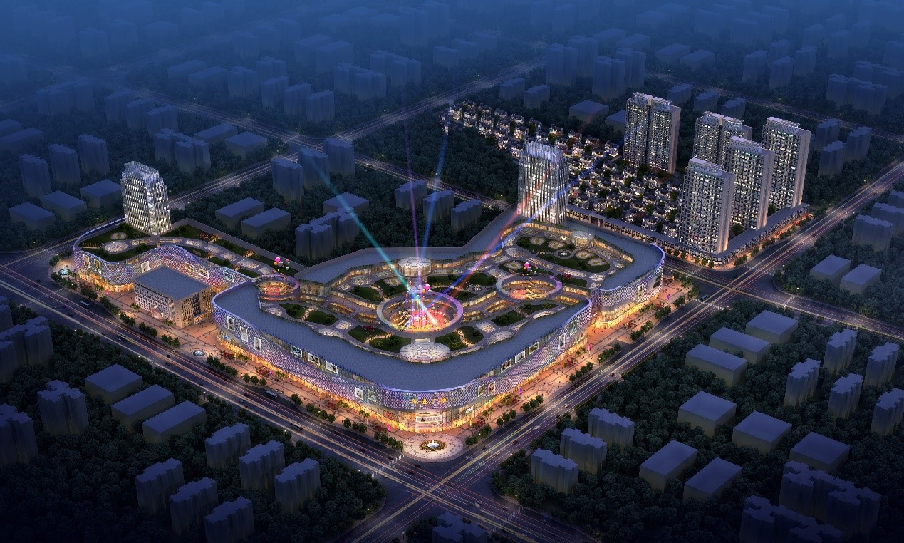 占地2.5万平方米,商业办公建筑面积合计12.8万平方米、建设1栋超高层办公楼及商业的地铁上盖大型综合体。