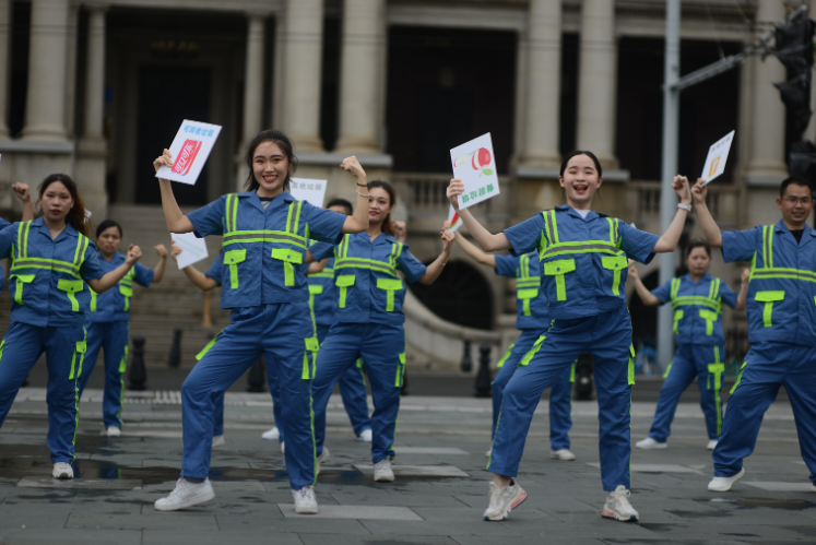 荔湾首次推出的垃圾分类城市爵士音乐短剧《舞动分类新时尚》也正式上线,这支“动感MV”邀请了多位环卫工人与垃圾分类志愿者参演。平日默默奉献的“城市美容师”化身动感舞者,以炫酷的舞步和朗朗上口的歌词把垃圾分类知识融入MV之中。