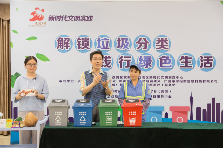 引领垃圾分类新时尚,“城市美容师”当主角。今年5月下旬,“解锁垃圾分类 践行绿色生活”——2020年垃圾分类活动在广州市荔湾区岭南街党群服务中心举行,活动首次邀请了奋战在垃圾分类一线的环卫工人担任“主角”,以“网络直播”将垃圾分类知识辐射全区。