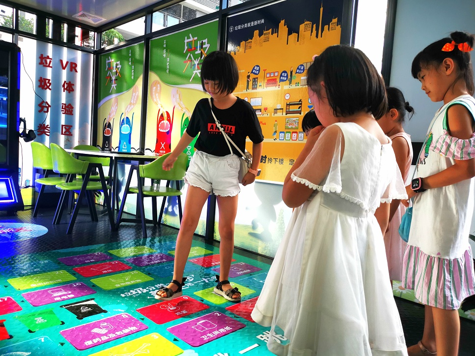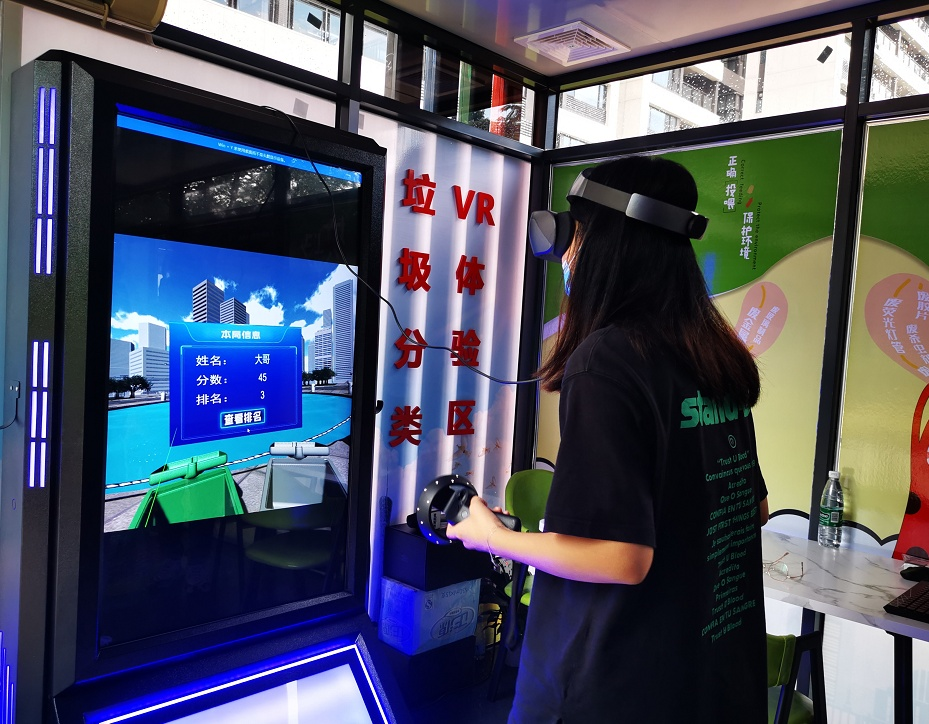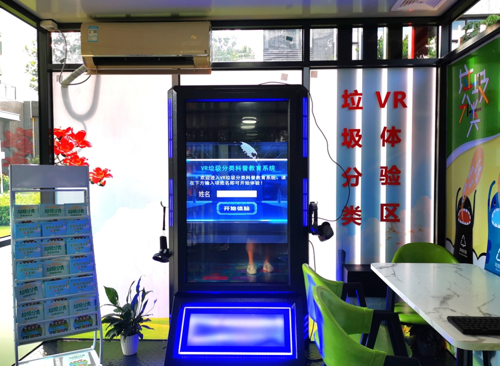 而馆内最大的亮点就是设置了垃圾分类VR体验区,通过AI互动垃圾分类游戏,可以让居民身临其境地体验垃圾分类。