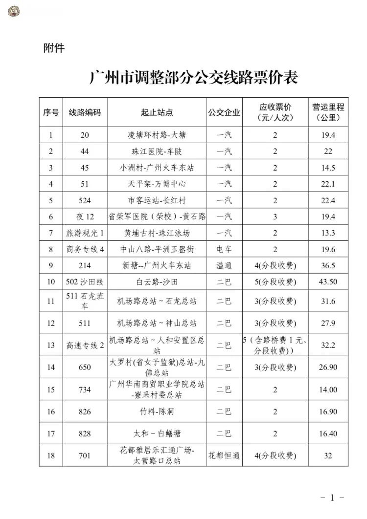 据了解,近年来,广州市积极开展公交线网优化调整及开行工作,对市区开行的公交线路途经路段及站点进行了调整,线路运营里程相应发生了变化。为进一步规范公交线路票价核定原则,确保公交线路票价与营运里程相对应,根据广州市公交线路票价定价规则,今年3月份,广州市发展和改革委员会重新核准32条公交线路票价。