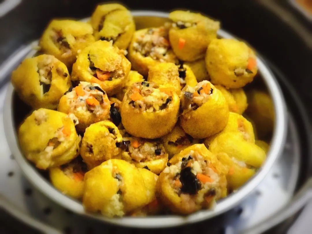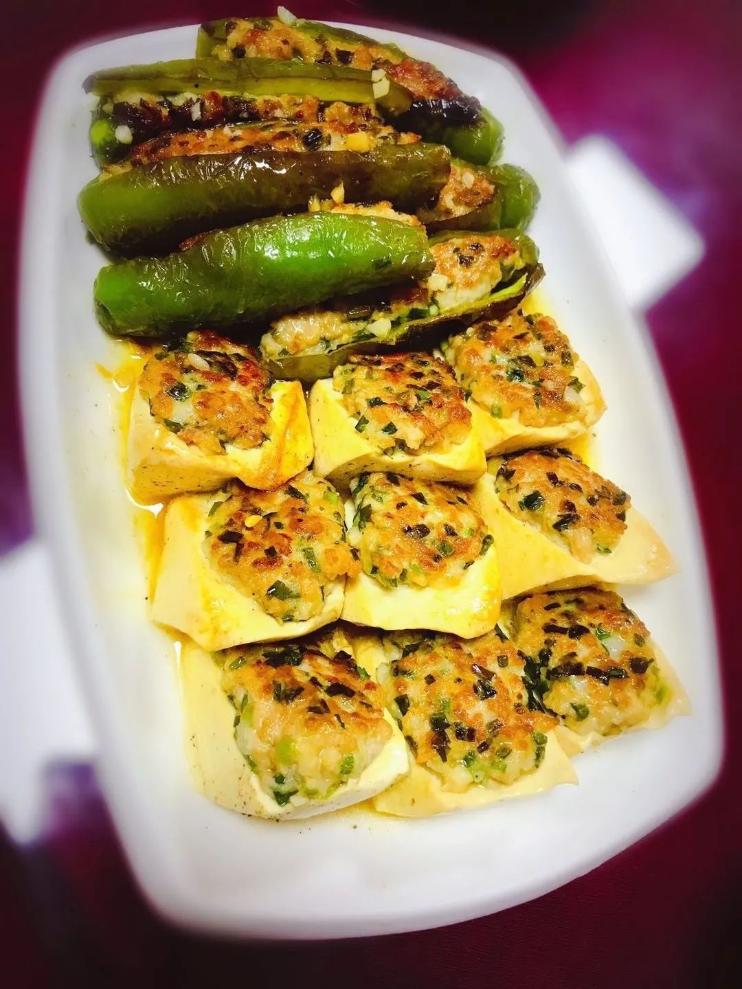 大半个小时后,热乎乎的香气直冲进鼻子里,用筷子夹一个尝尝,肉馅美味可口,豆腐鲜嫩香软,一二三四五六个,吃不停,光吃酿油豆腐就能吃个饱。