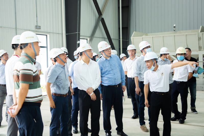 仪式结束后,参加活动的领导及嘉宾参观了大空港项目厂房及设备,并在再生砌块生产车间,见证了大空港项目第一批透水砖,从原材料到成品,仅需 1 分钟就“诞生”的智能化生产过程。