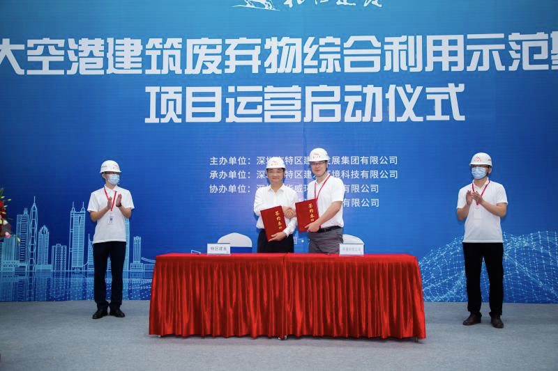 活动现场还举行了《大空港项目委托经营合同》和《大空港项目处理拆除建废生产线和再生砌块生产线承包经营合同》两项合同签约仪式。大空港项目将由环境科技公司负责经营管理,其中,项目的处理拆除建废生产线和再生砌块生产线交由环境科技公司控股企业——深圳市华威环保建材有限公司(以下简称“华威公司”)承包经营,负责具体生产。