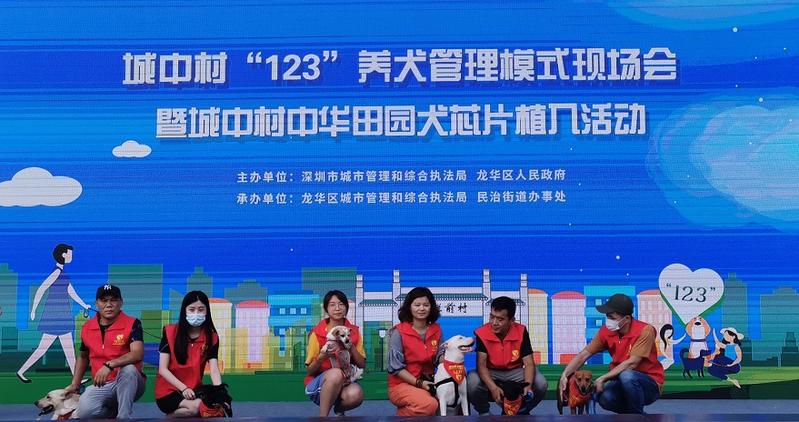 助力文明城市创建,引领养犬文明新风尚,打造城中村养犬管理模式!8月31日下午,由深圳市城市管理和综合执法局、龙华区人民政府主办,龙华区城市管理和综合执法局、民治街道办事处承办的城中村“一办两队三治”养犬管理模式现场会暨中华田园犬芯片植入活动在民治街道牛栏前村举行。
