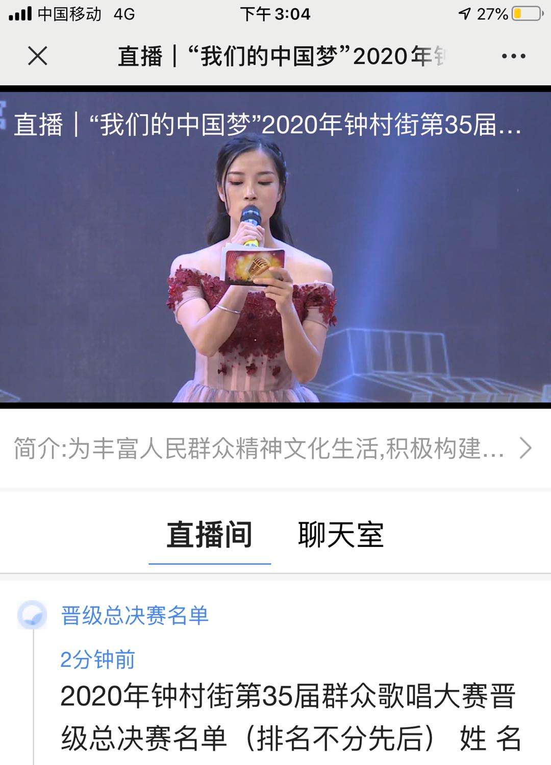 据钟村街文体中心相关负责人介绍,钟村街群众歌唱大赛是一年一度的文艺盛事,在今年疫情防控常态化之下,为使群众文化品牌能持续举办,钟村街在本届歌唱比赛形式上进行创新宣传,通过视频海选报名,线下复赛形式共吸引了140名选手参加,最终选出优秀选手决战舞台。决赛在线上全网多平台进行直播报道,吸引了直播观看人数达27956人次。