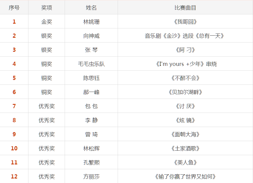 比赛在各种优美动听的歌声中圆满结束,嘉宾评委分别为本次大赛的金、银、铜、优秀奖、最佳人气奖等得主颁奖并合影留念。