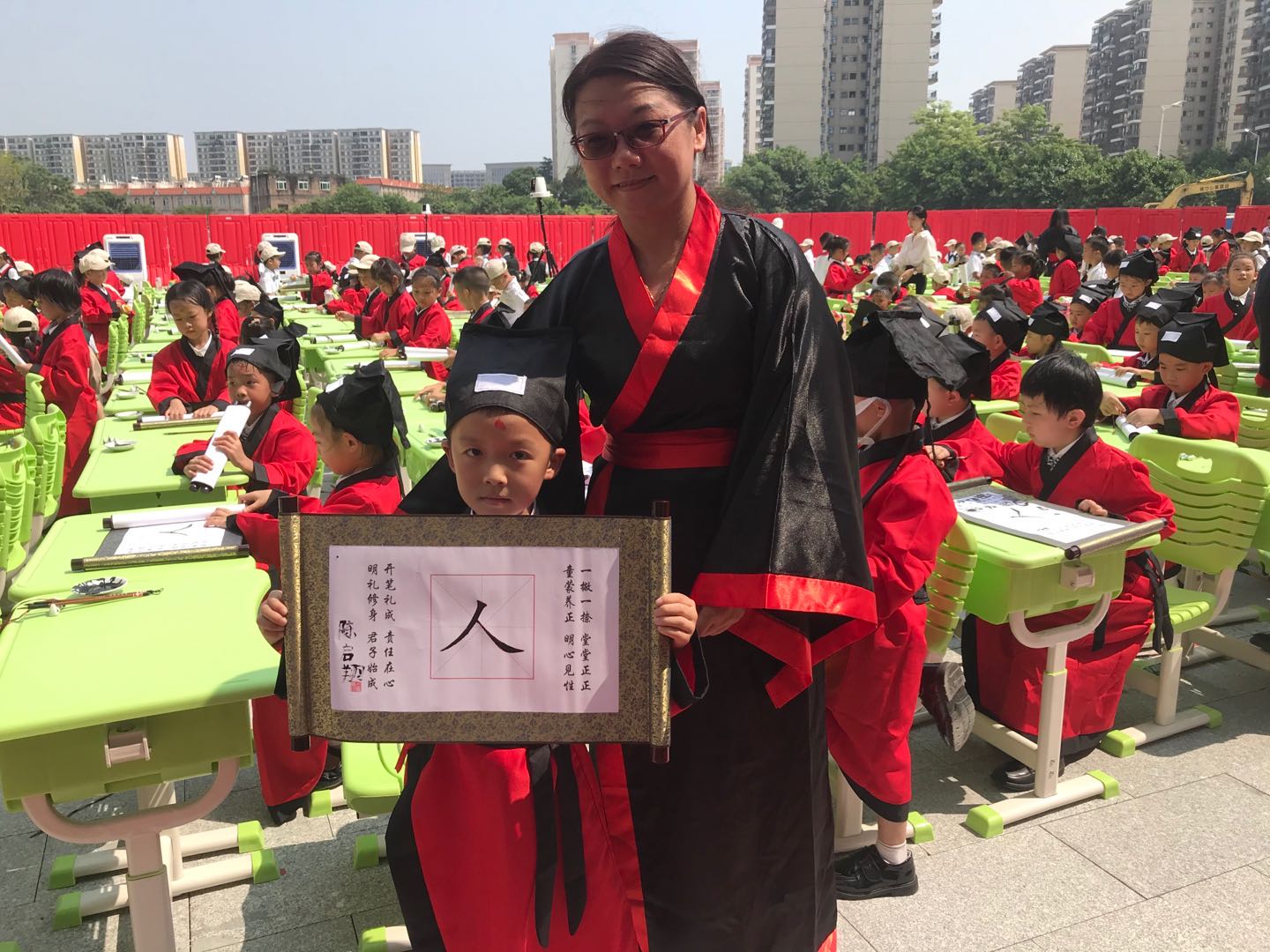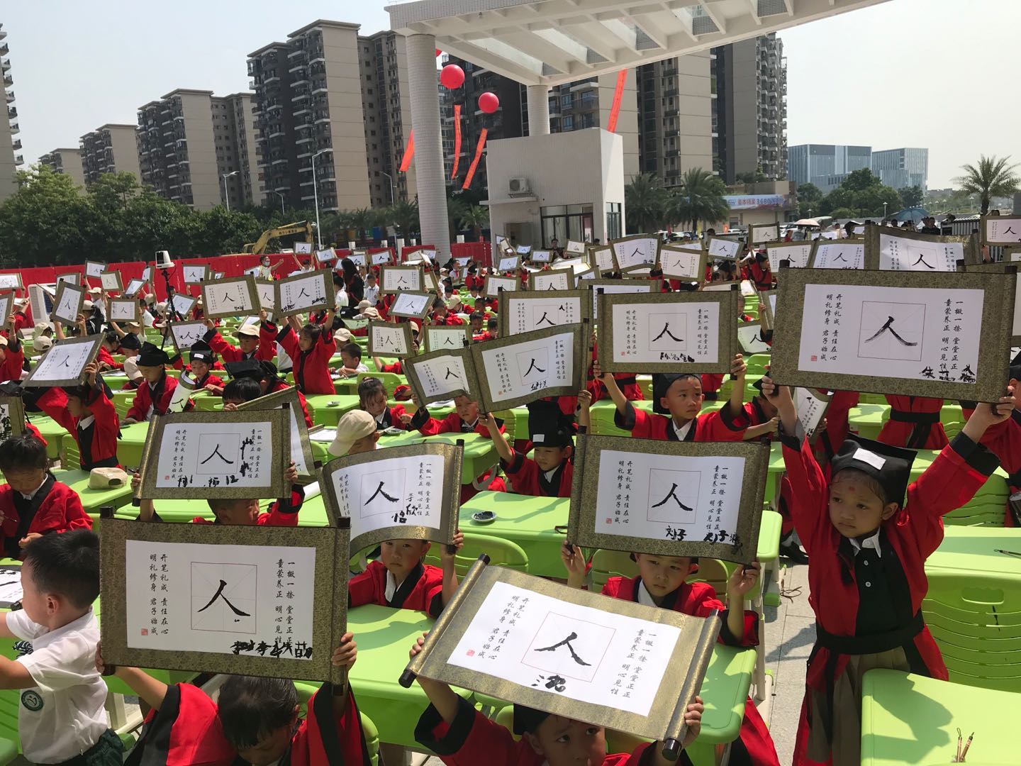 启动仪式后,还举行了多个有纪念意义的活动。新雅小学(和雅校区)孔子圣像揭幕仪式、朱砂启智、击鼓鸣志和2020级新生开笔礼。朱砂启智希望同学们开启智慧,从此眼明心亮。击鼓鸣志意在表明自己的志向,击鼓的声音越响,传得越远,说明志向就越远大。开笔礼由孔子第76代传人孔令森主持,新生用毛笔书写“人”字,寓意着人生从蒙童之子走向成人的启蒙阶段,学会做人最为重要。