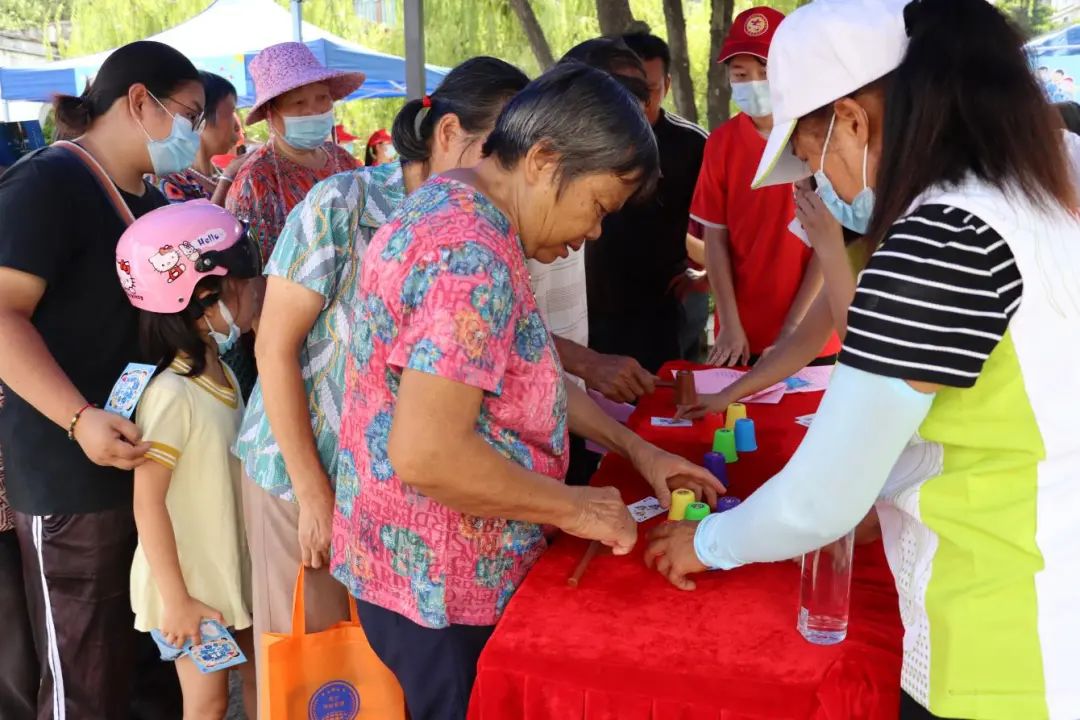 活动现场还设置了四个游戏摊位,群众在网格员和网格志愿者的指引下,领取卡牌参加各项游戏。
