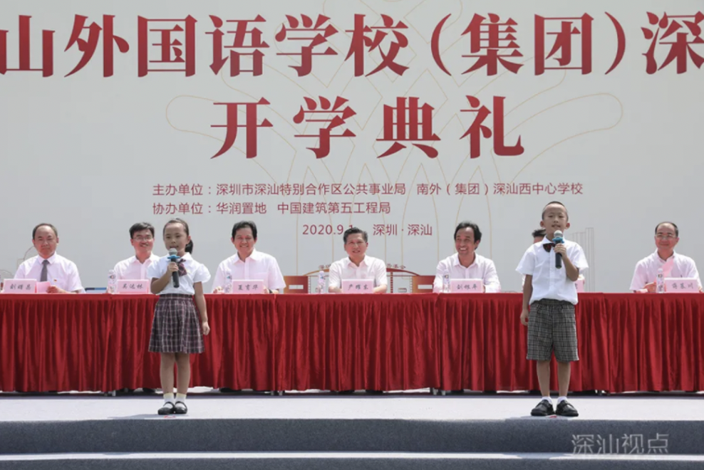 金秋时节,带着秋的喜悦,开启新的希望,9月1日,深圳市南山外国语学校(集团)深汕西中心学校(简称“南外深汕西中心学校”)举行2020年开学典礼,标志着深圳市深汕特别合作区(简称“深汕合作区”)揭牌成立以来,第一所以深圳标准、深圳质量建设的九年一贯制学校开始运营,正式拉开了深汕教育现代化发展的序幕。从此,全区人民将逐步在“家门口”享受到与深圳同等优质的教育资源。