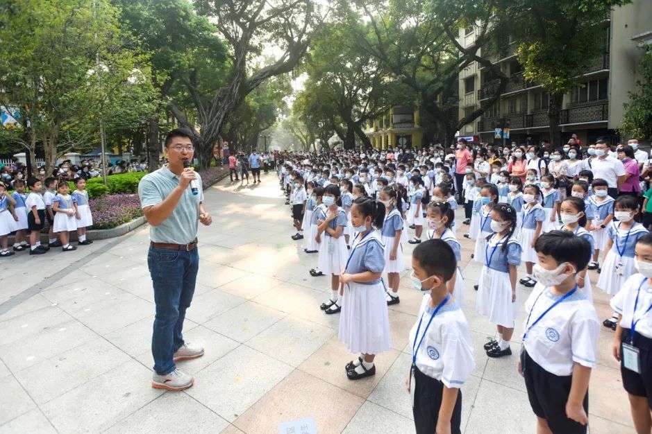 8月30日上午,沙面岛的友好园显得格外富有生机和活力。一场特殊的新生入学仪式在美丽的沙面岛上拉开帷幕,沙面小学、沙面实验学校全体新生在家长和老师的见证下迈入小学之门,开始了崭新的学习与生活。