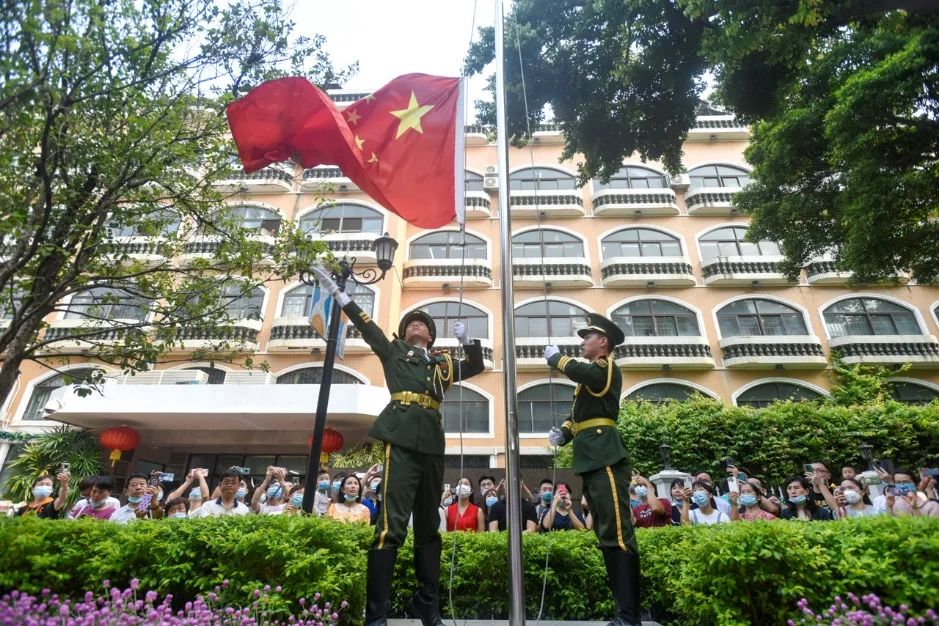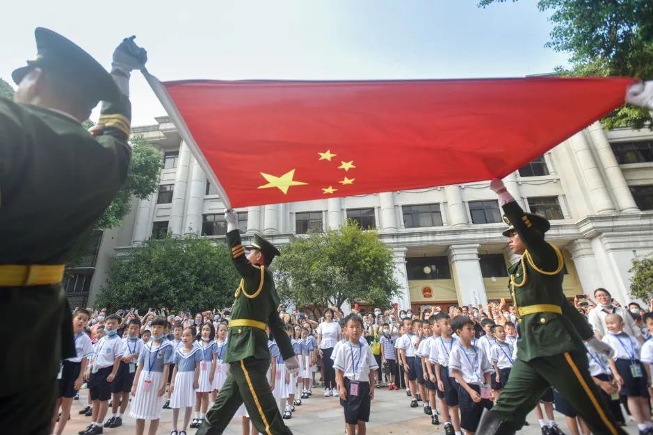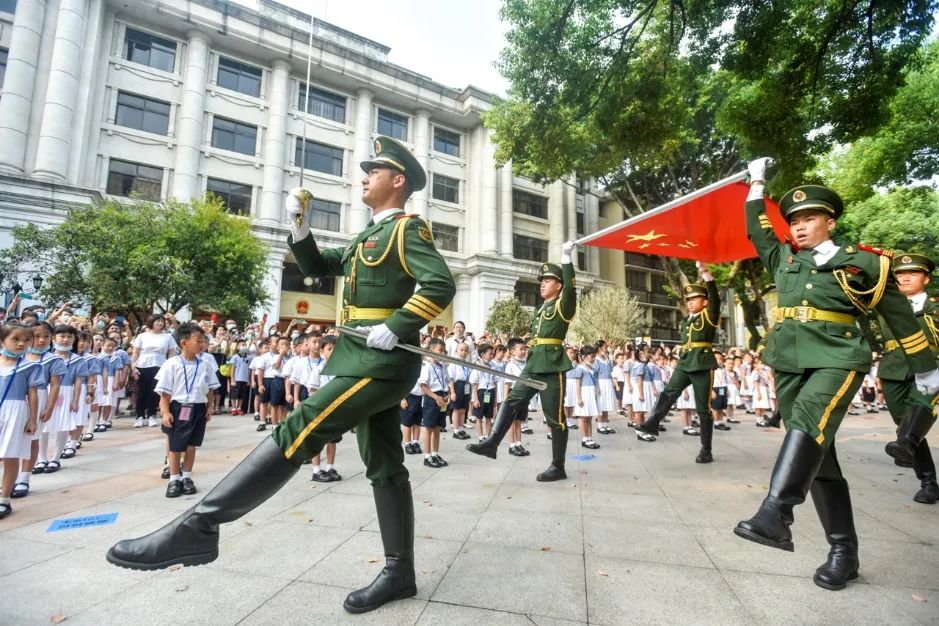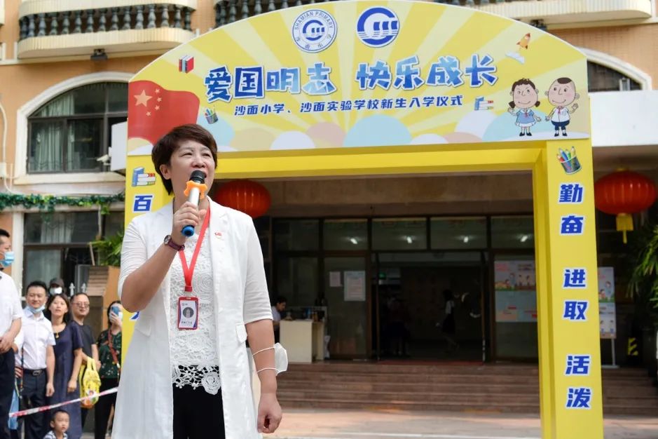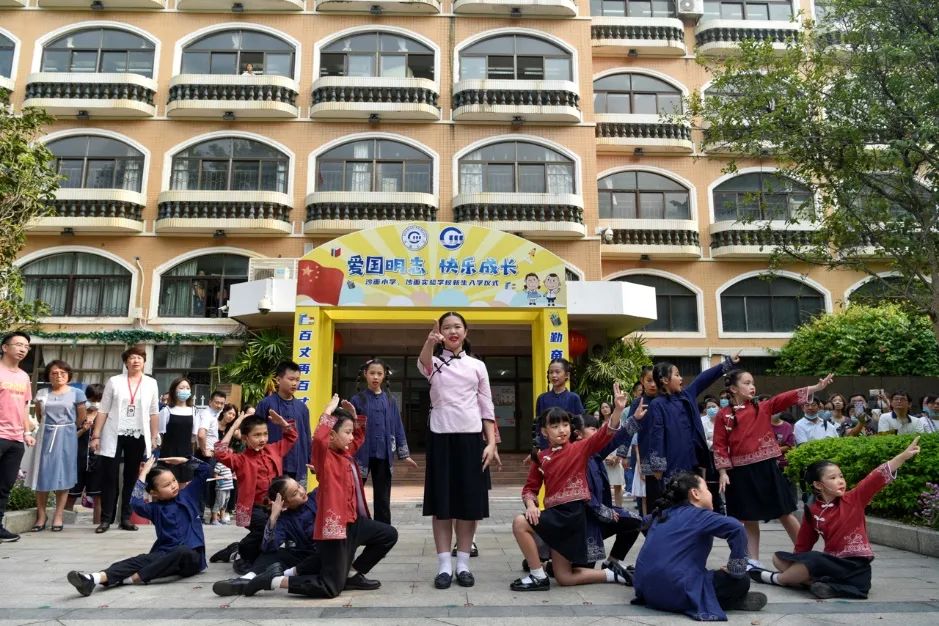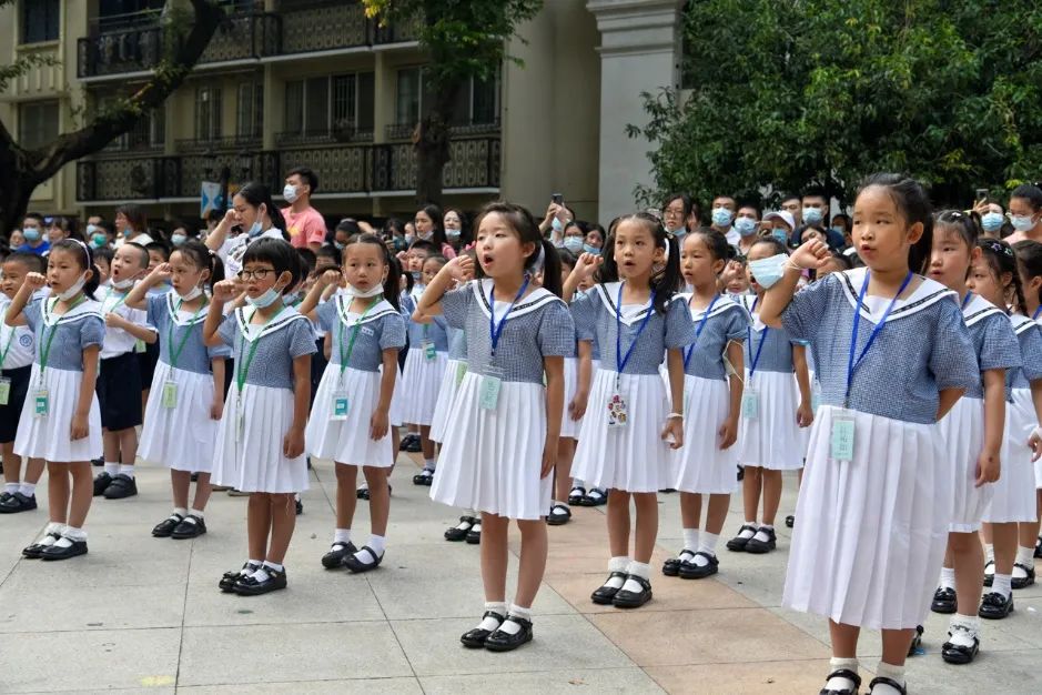据了解,沙面小学、沙面实验学校一直把对学生的思政教育与创建文明城市的宣传教育紧密结合。本次新生入学仪式也是沙面小学、沙面实验学校文明校园系列活动之一,以"爱国明志 快乐起航"为主题,全体一年级的师生家长进行了一场意义非凡的升旗仪式。