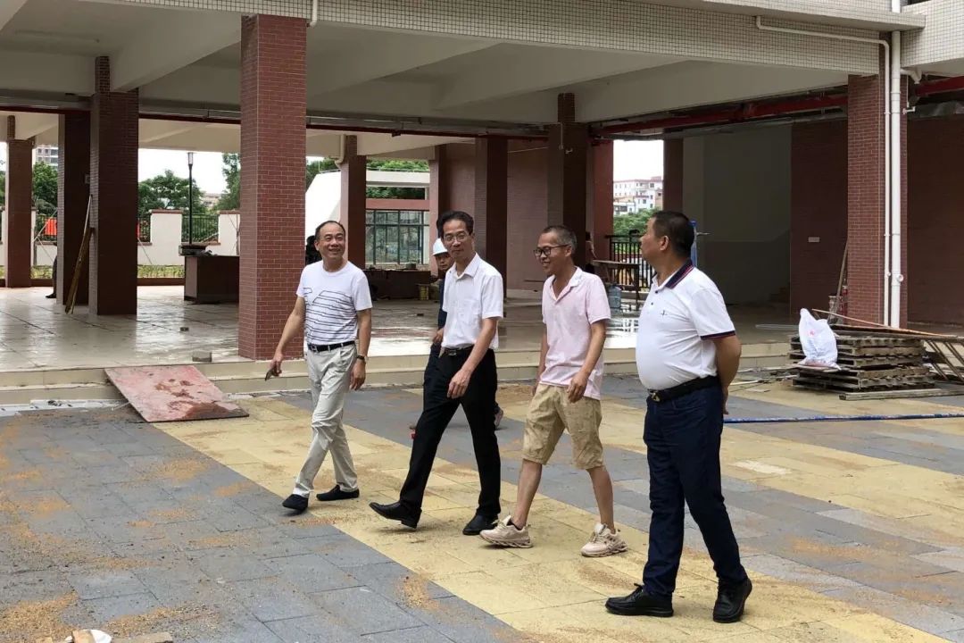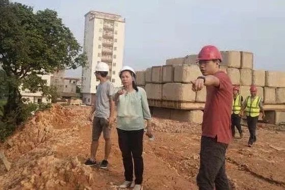 ▲区、镇相关领导现场督导学校建设。
