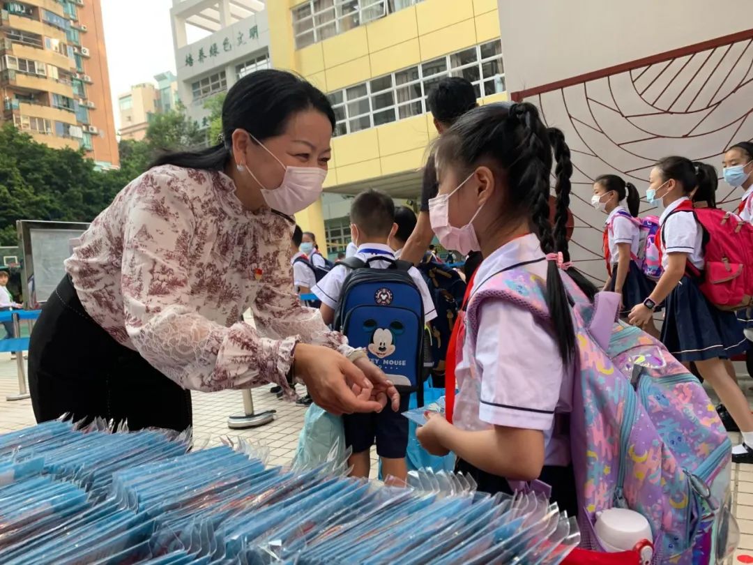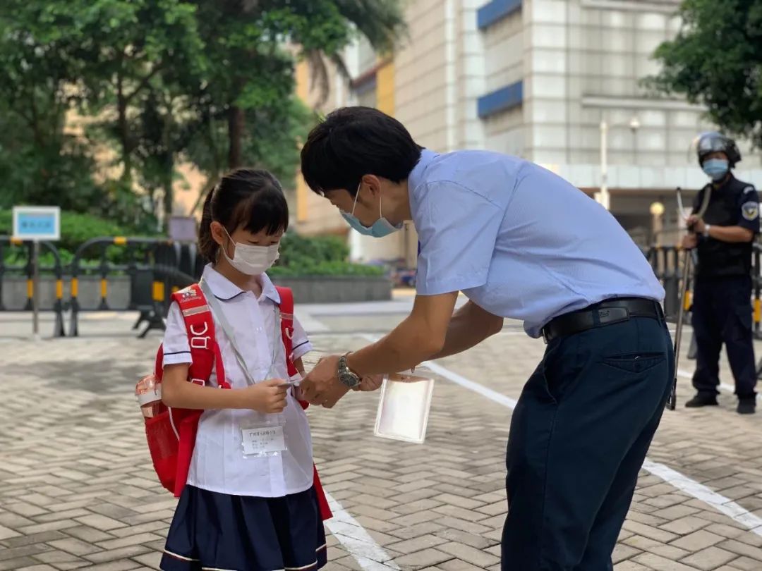 小e发现,新学期伊始,学校为同学们准备了一份特别定制的小礼物——一枚印有校徽的钥匙扣。在东方校区门口,校长欧阳琪和副校长裴崇武亲手为孩子们送上这份小礼物,并且在细微之处教孩子们养成文明礼貌好习惯。