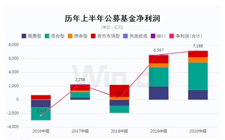 Wind统计显示,上半年公募基金盈利7188亿元,创近五年新高,其中混合型基金盈利最高,达4032亿元。在上半年公募基金规模迎来爆发式增长的同时,基金公司的管理费、托管费、佣金收入合计544.88亿元,同比大幅增长。其中,上半年基金公司管理费收入399.29亿元,同比增长31.05%。
