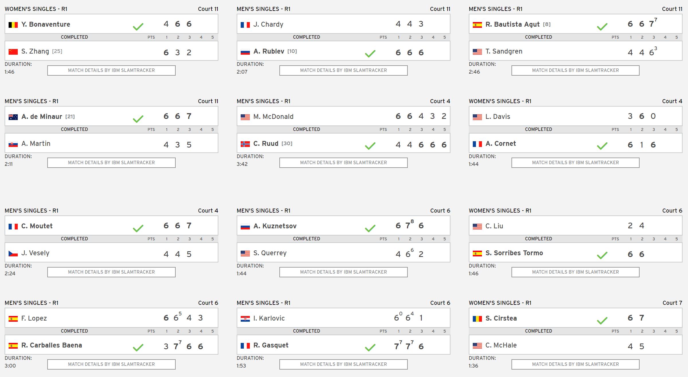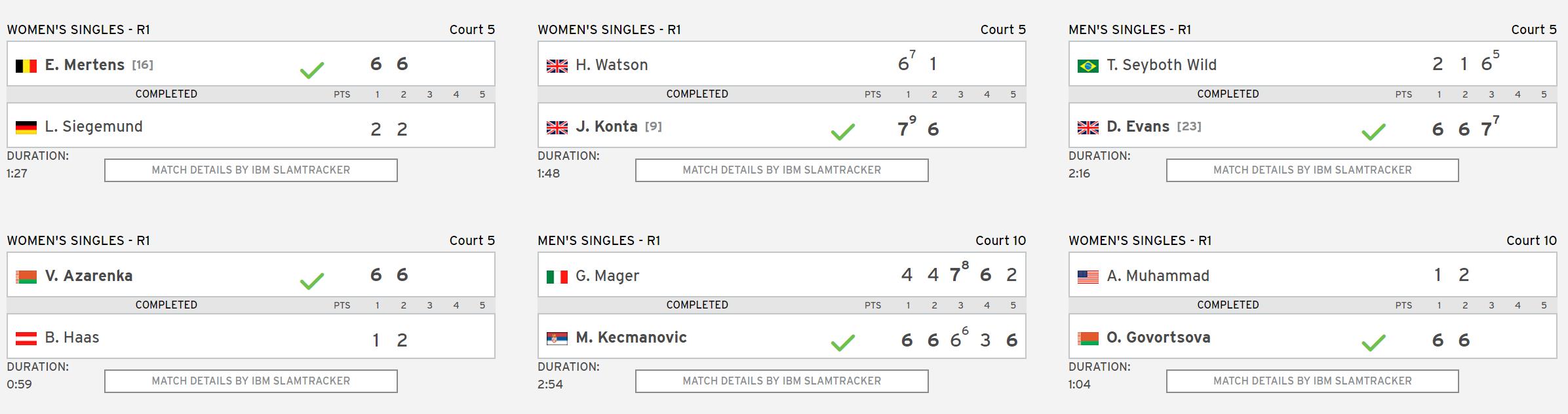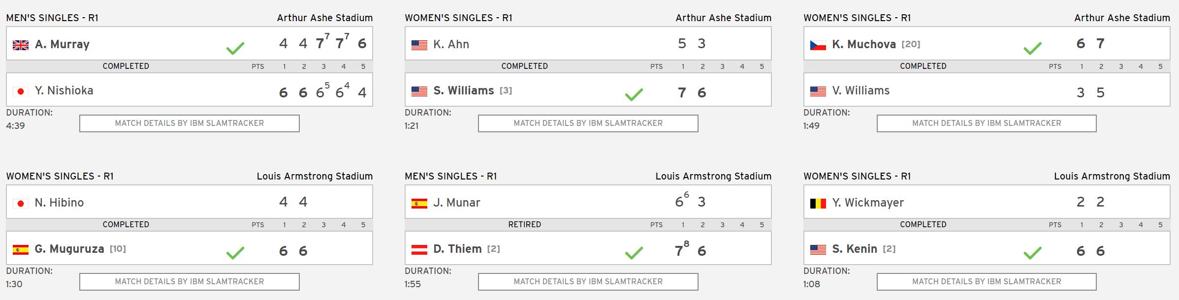 另外,今年澳网女单冠军肯宁、赛会女单3号种子小威廉姆斯、两个大满贯得主穆古鲁扎均闯过了第一轮。