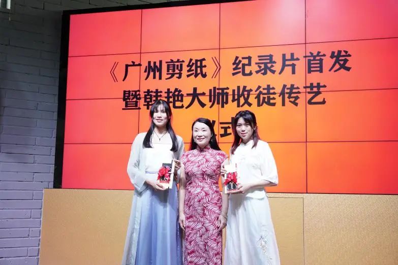 此外,韩艳招收了广州美术学院毕业生苏嘉莉和广州大学学生许施然为徒弟,还将自己为研究广州剪纸而收集的古籍分别捐赠给海珠区地方志办和区图书馆,将创作的剪纸精品《幸福海珠》分别捐赠给海珠区教育局和区文广旅体局,并将搜集的大量有关广州剪纸的文字和图片资料整理成历史档案在现场进行了展览。