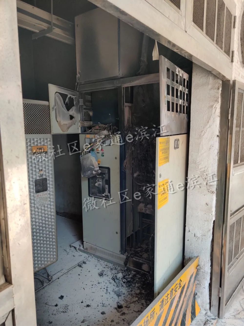电房设备烧毁严重。