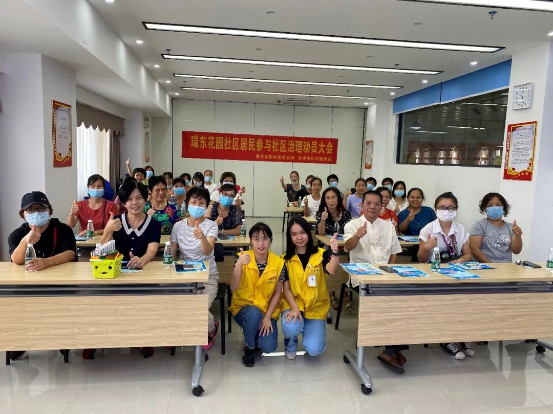 8月22日,瑞东花园社区组织召开社区治理动员大会如期举办。近30名社区热心居民、优秀志愿者参与其中。动员大会现场,社工站向与会人员详细解析了社区治理的理念以及创建幸福社区的计划。