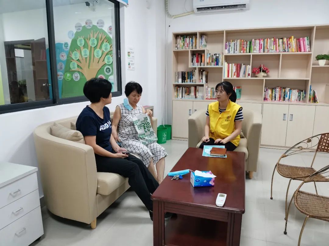 团队代表与社工讨论策划。采纳居民的建议,社工们利用晚上时间,深入社区积极开展跳蚤市场的宣传预热活动,向居民介绍爱心跳蚤市场开展的理念、内容、时间与地点。活动理念获得了居民的认同,不少居民主动询问如何参与社区义卖。