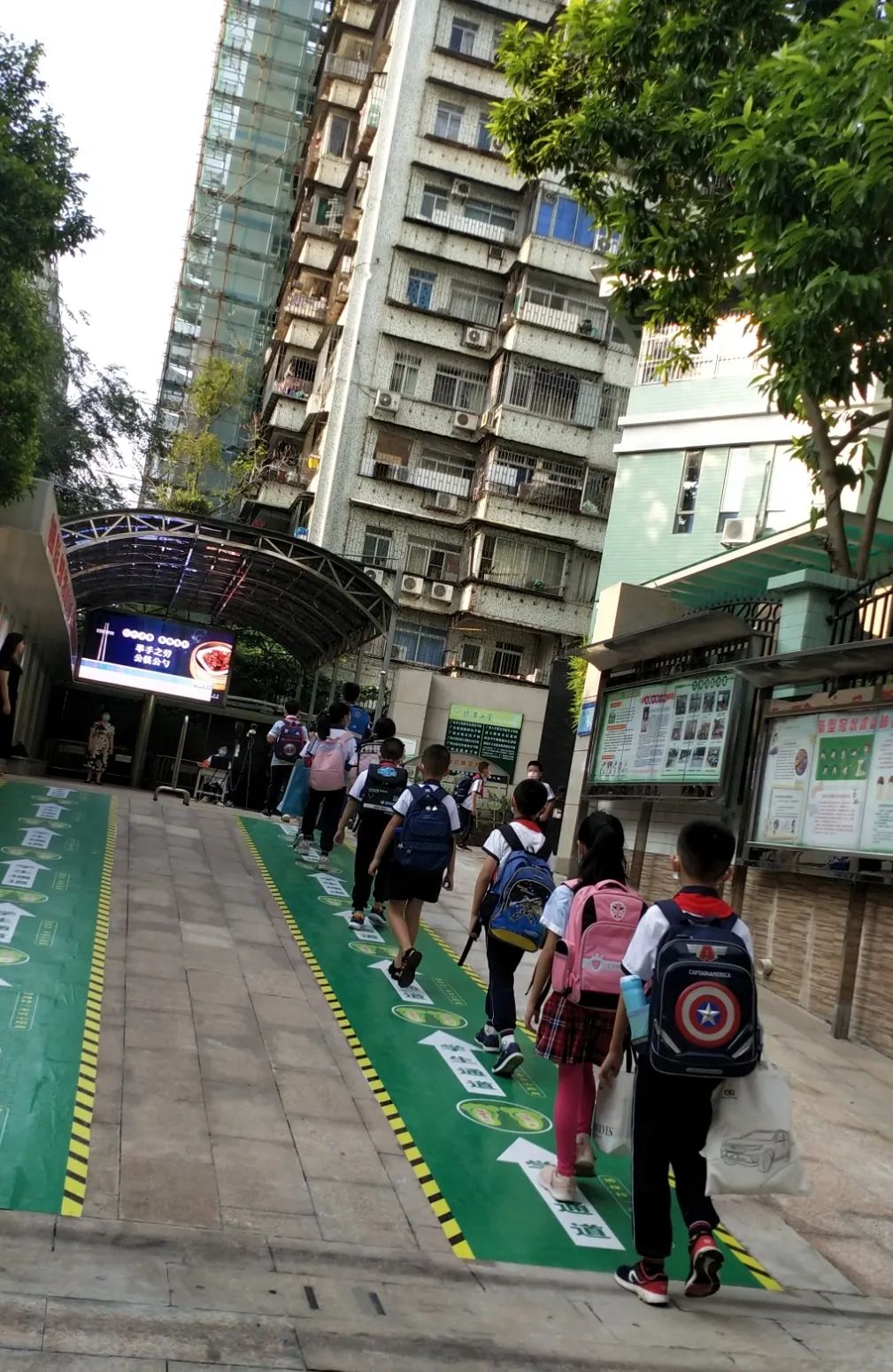 学生在老师指引下有序进校
