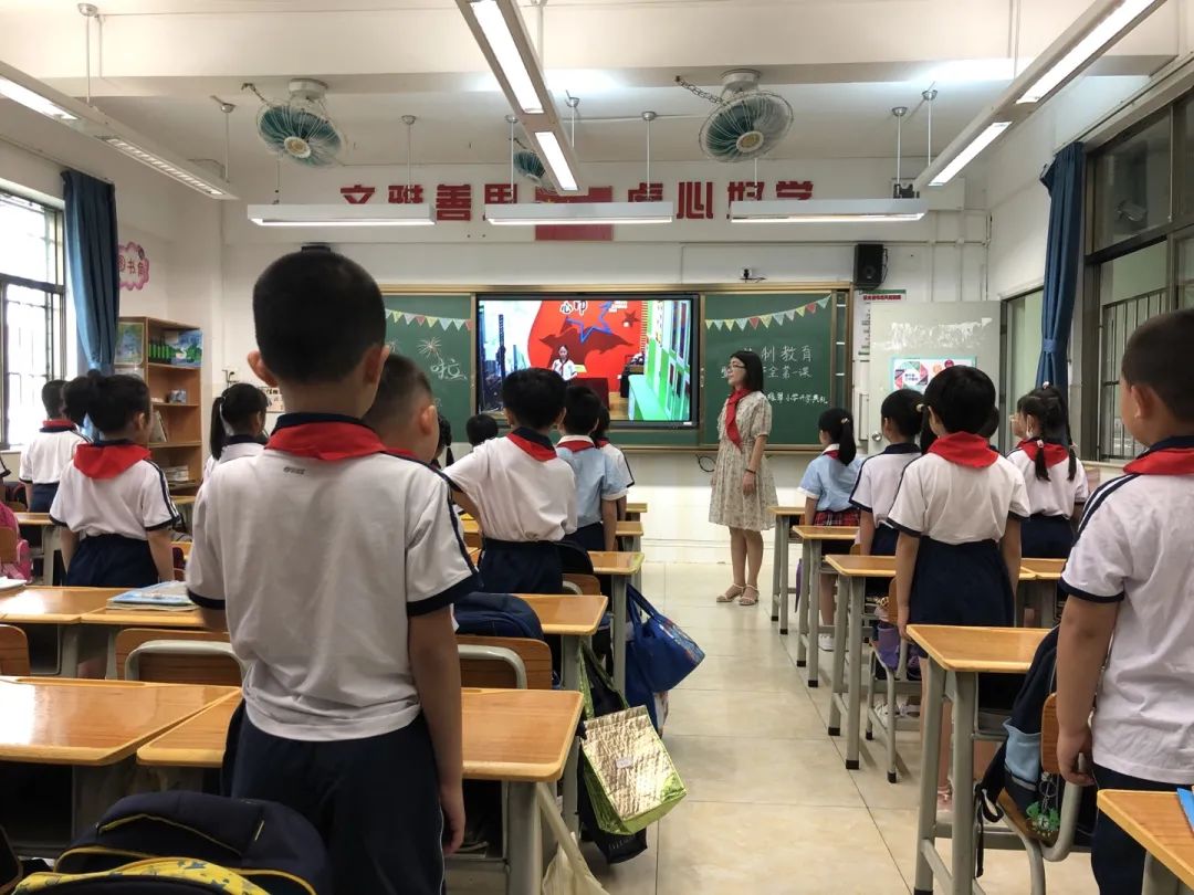 本学期的开学礼简单而隆重。首先进行的是室内直播“升旗仪式”,少先队员们精神饱满,挺拔的身姿,标准的队礼,唱响的国歌,铿锵有力,正是绿翠学子的拔节气韵。