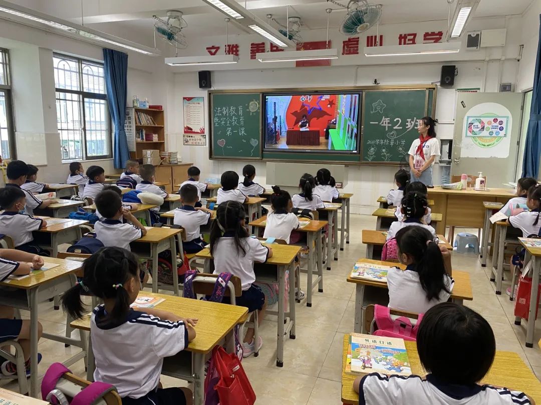 迎着清香四溢的竹浪,踏着朝气蓬勃的脚步,新学期如约而至。9月1日,广州市海珠区绿翠小学全体师生齐聚绿意正浓的校园,举行主题为“法制教育暨交通安全第一课”的开学典礼,共同开启新学期的美好篇章。当天,学校保安、值日老师已在各自的岗位上为同学们指引护航。