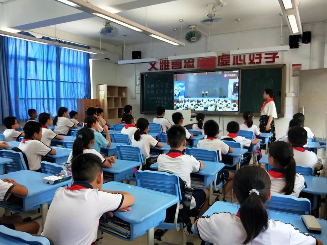 在全体师生热烈的掌声和期盼下,迎来校长翁少静的致辞《一路向阳,遇见美好》。翁少静先是带着师生们回望过去一学年,“绿小人”拼搏进取,续写了“绿小”历史的新辉煌,学校先后获得了“广东省书香校园”和“广州市第五批心理健康特色学校”等荣誉称号。更值得骄傲的是,在疫情期间学校主任何颖申、主任吴轶主任、老师易颖贤均承担电视课堂主讲的任务,校内更是有多位老师在市级、区级比赛中频获佳绩。