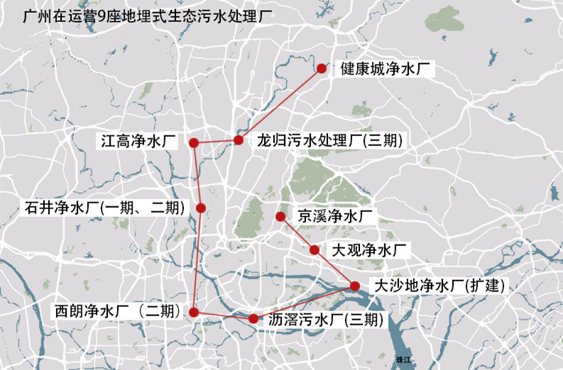 从2010年建成全国首座地埋式膜处理工艺净水厂——京溪地下净水厂到如今,广州累计建成地埋式污水处理厂9座,呈北斗状分布于珠江两岸,被誉为“地下北斗9星”。9座地埋式污水处理总产能181万吨/日,占广州中心城区污水处理总产能的三分之一强,广州也成为国内地埋式污水处理产能第一的城市。